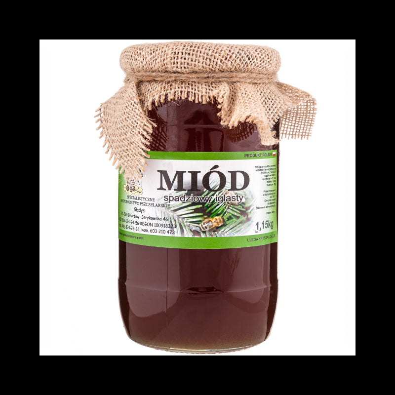 Miód spadziowy ze spadzi iglastej jodłowej w dużym słoju 1,10kg